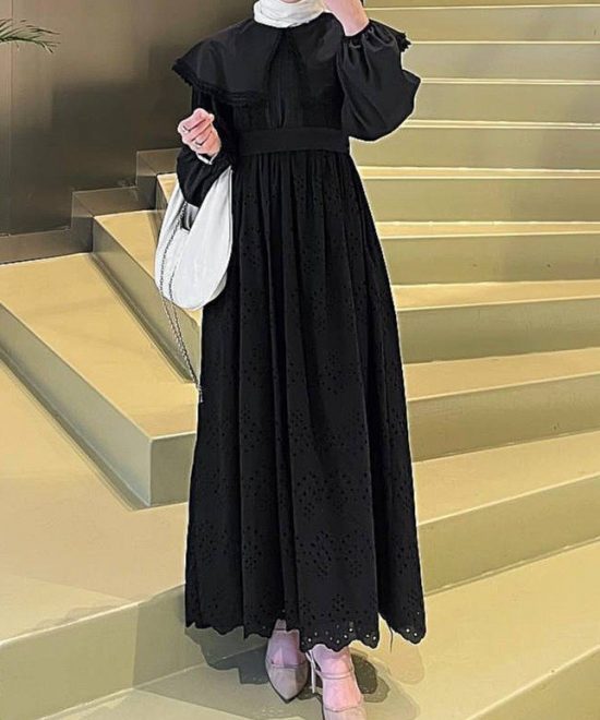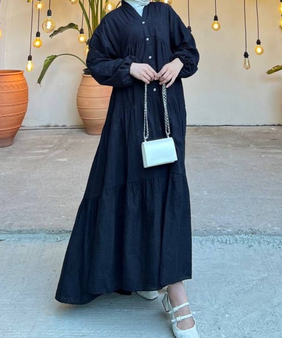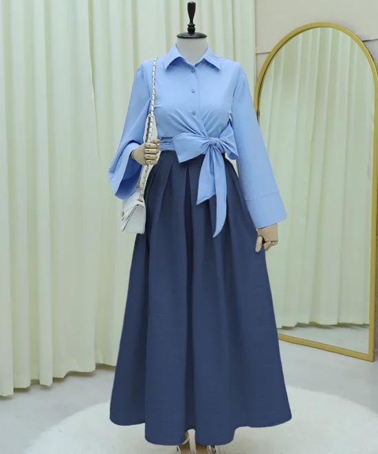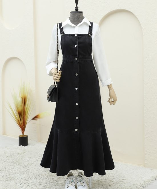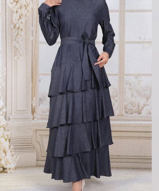 Charcoal Tencel Denim Dress with Tiered Skirt and Belt