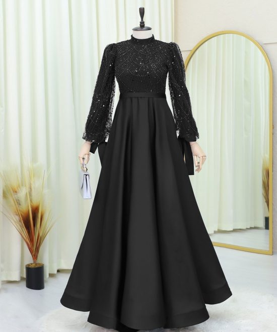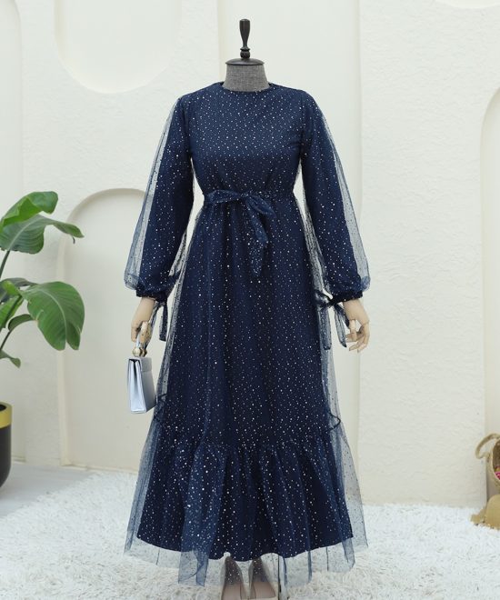 Tulle Dress with Scattered Sequins and Tie-Cuff Sleeves