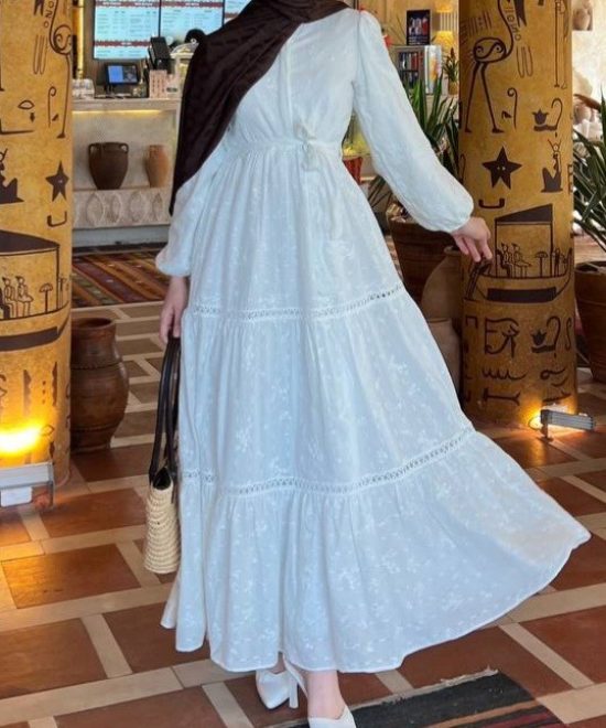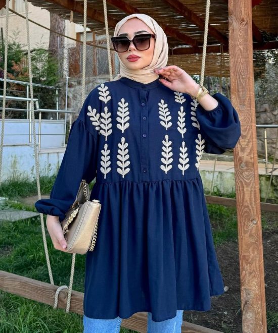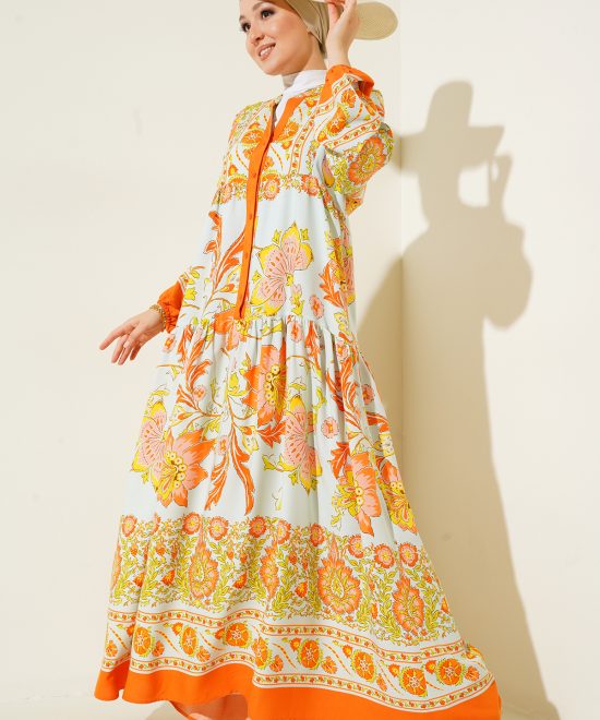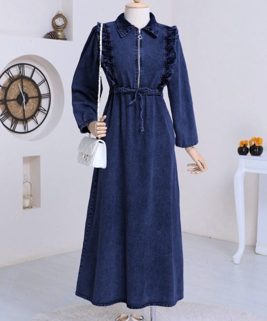 Ruffled Empire-Cut Denim Dress with Adjustable Waist