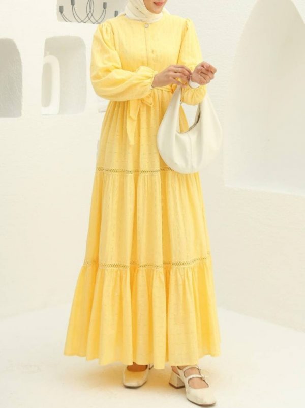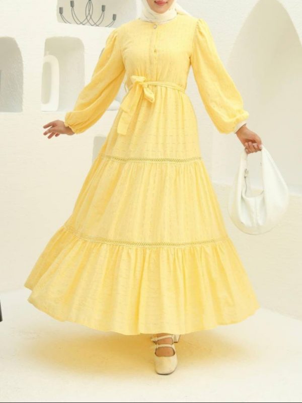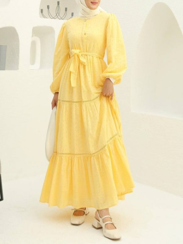 Be the first to review “Ruffle-Hem Dress with Lace Trim Details”